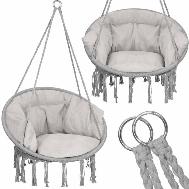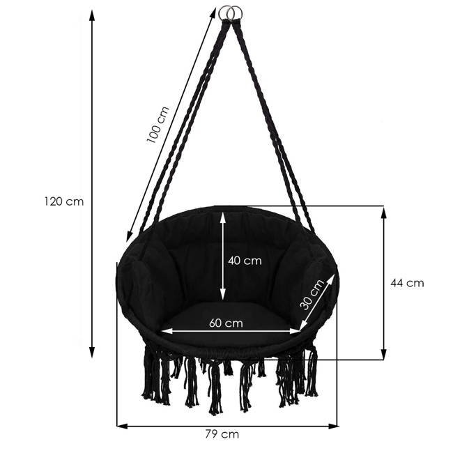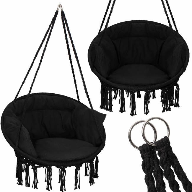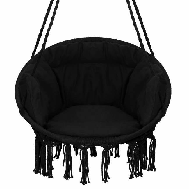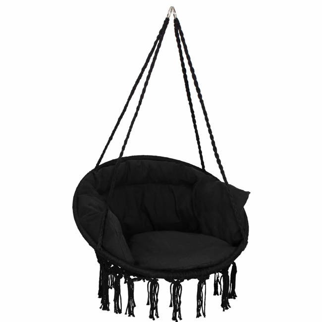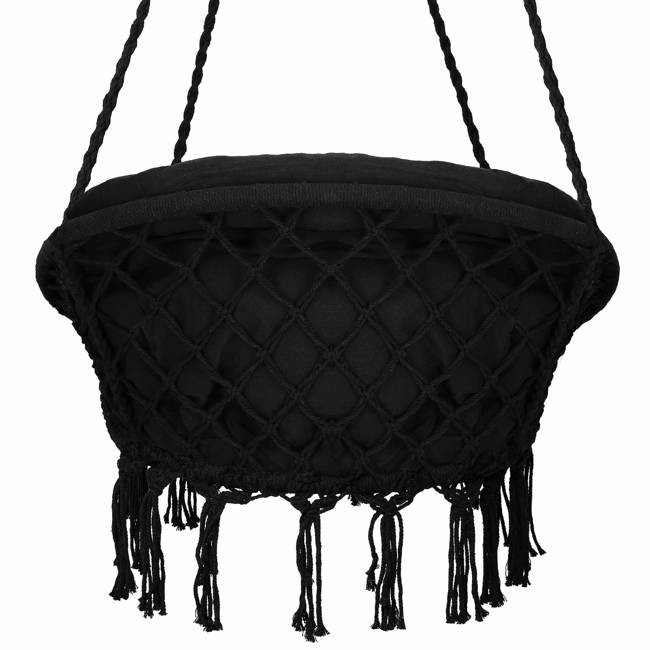 Kerti függőszék párnával rojtokkal Fekete / Szürke
